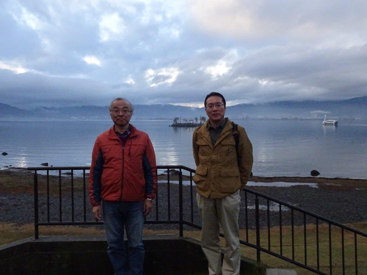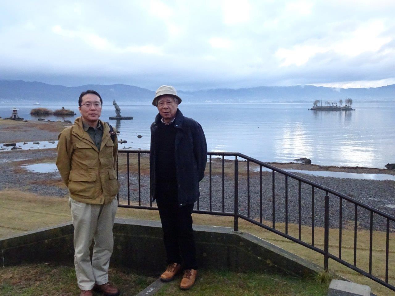 🔽石川県から参加の3名は夕方の集合まで片倉館や諏訪湖湖畔を散策(写真・長谷川)。