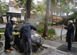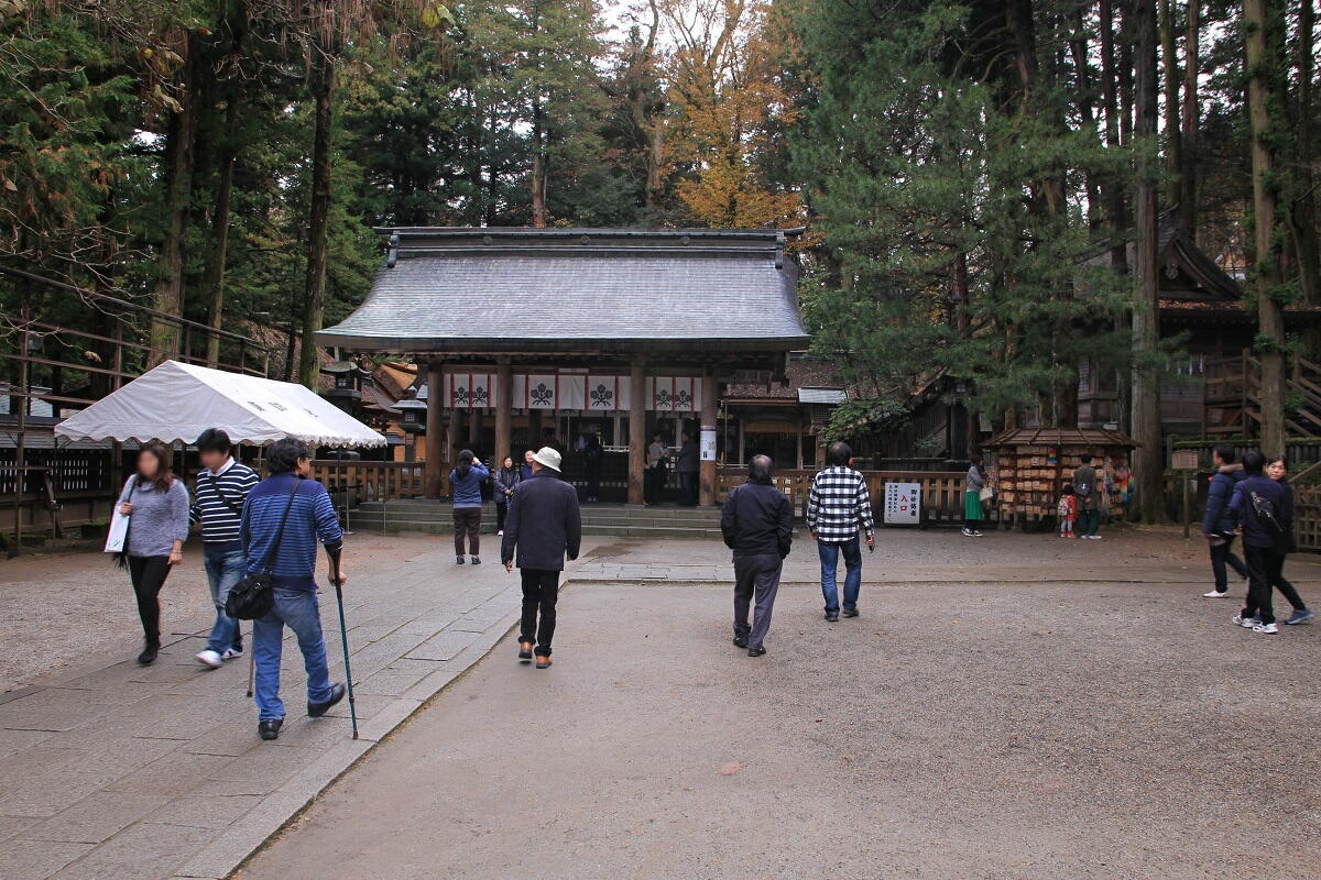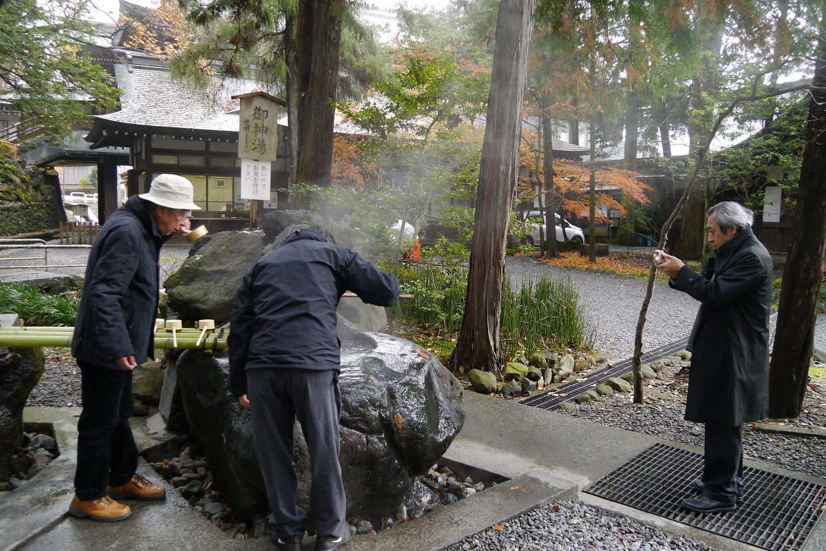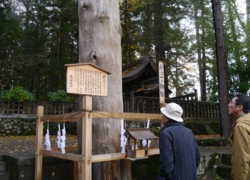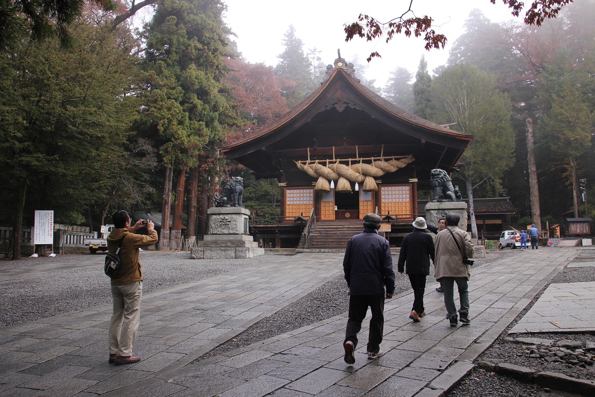 🔽みんなでまずは山王閣そばの諏訪大社下社秋宮を参拝。