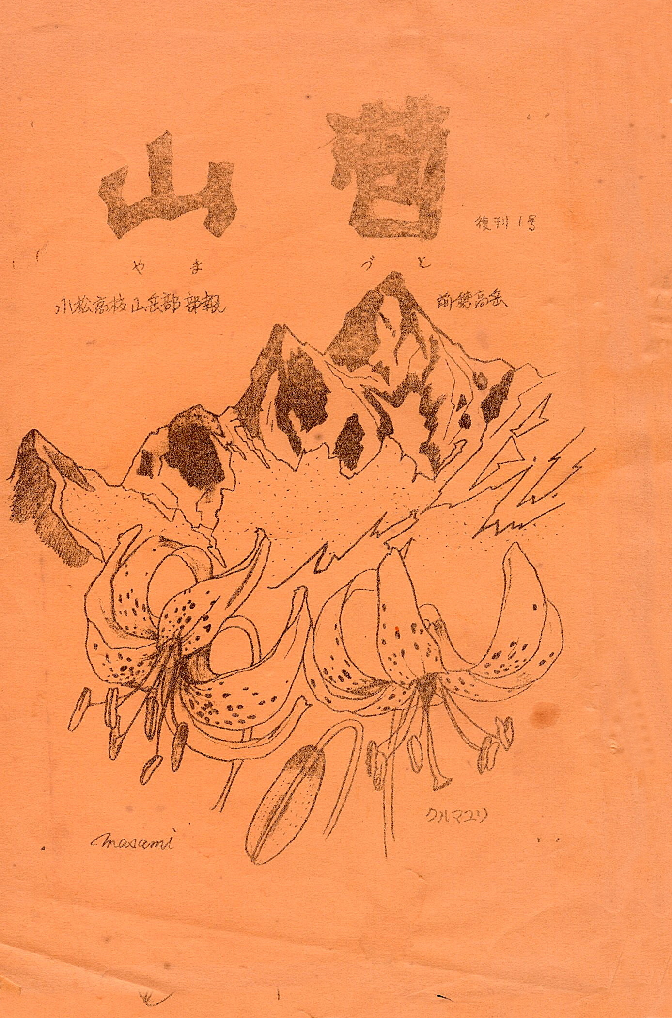 「山苞(やまづと)」は山岳部員を中心に昭和二十・三十年代に発行された山行記録文集で、昭和53年(1978年)4月に復刊第1号が発行されました。